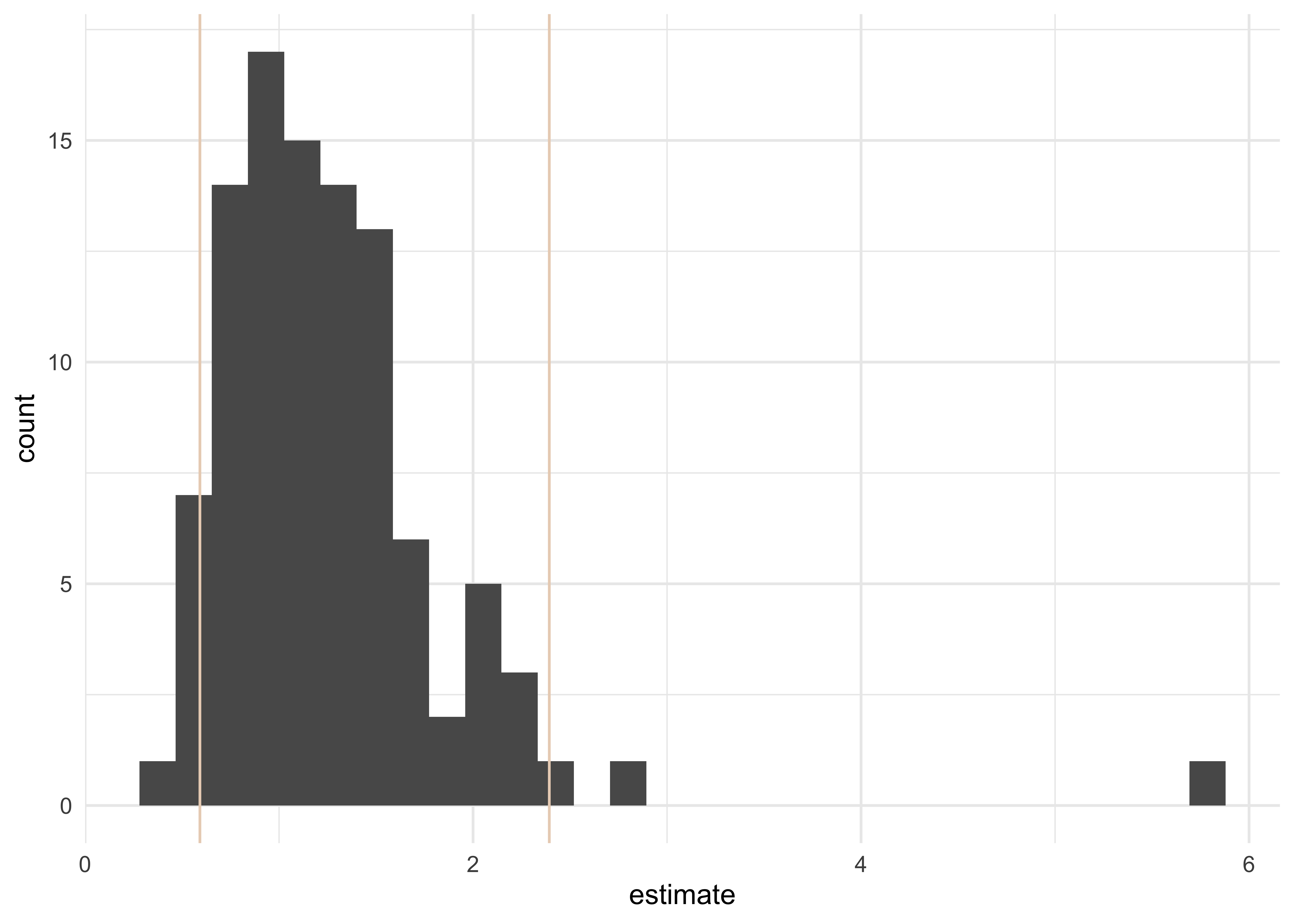 geom_vline(aes(xintercept = .upper), data = percentile_intervals %>% filter(term == "qsmk"), col = "#EAD3BF")